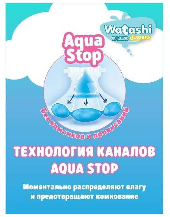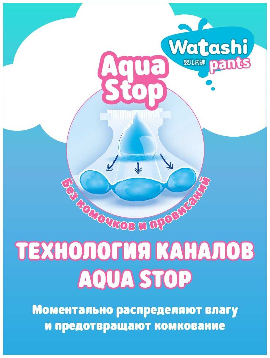 Технология Aqua-Stop с тремя каналами распределяет жидкость по всей поверхности подгузника, предотвращая образование комков в одном месте. Благодаря этому трусики не провисают тяжелым мешком между ног даже при значительном наполнении, что позволяет ребенку активно двигаться. Влага надежно удерживается внутри, а внутренний слой остается относительно сухим, что подтверждается отзывами о комфорте ребенка после использования. -
