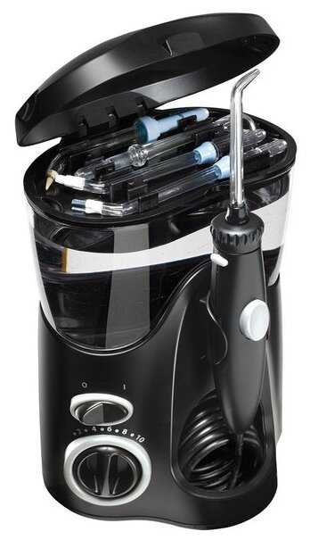 Ирригатор отлично справляется с поставленной задачей, искала именно эту модель, рекомендовала стоматолог как идеальное соотношение цены и качества. Очень мощный, не используем на максимальной мощности, пользуемся всей семьёй, удобное хранение насадок