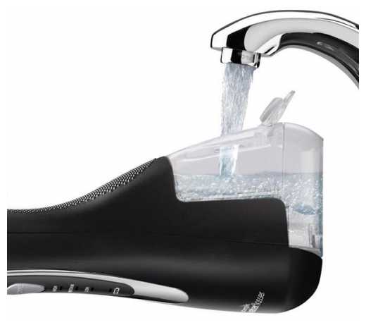- 180 мл хватает на 30–40 секунд работы — для полной очистки ротовой полости требуется 2–3 долива.