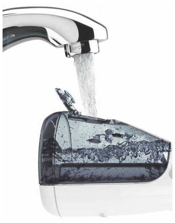 - + Зарядки хватает на 2 недели. Компактный, но воды достаточно для разовой чистки. Хорошие насадки, в том числе для промывания носа.