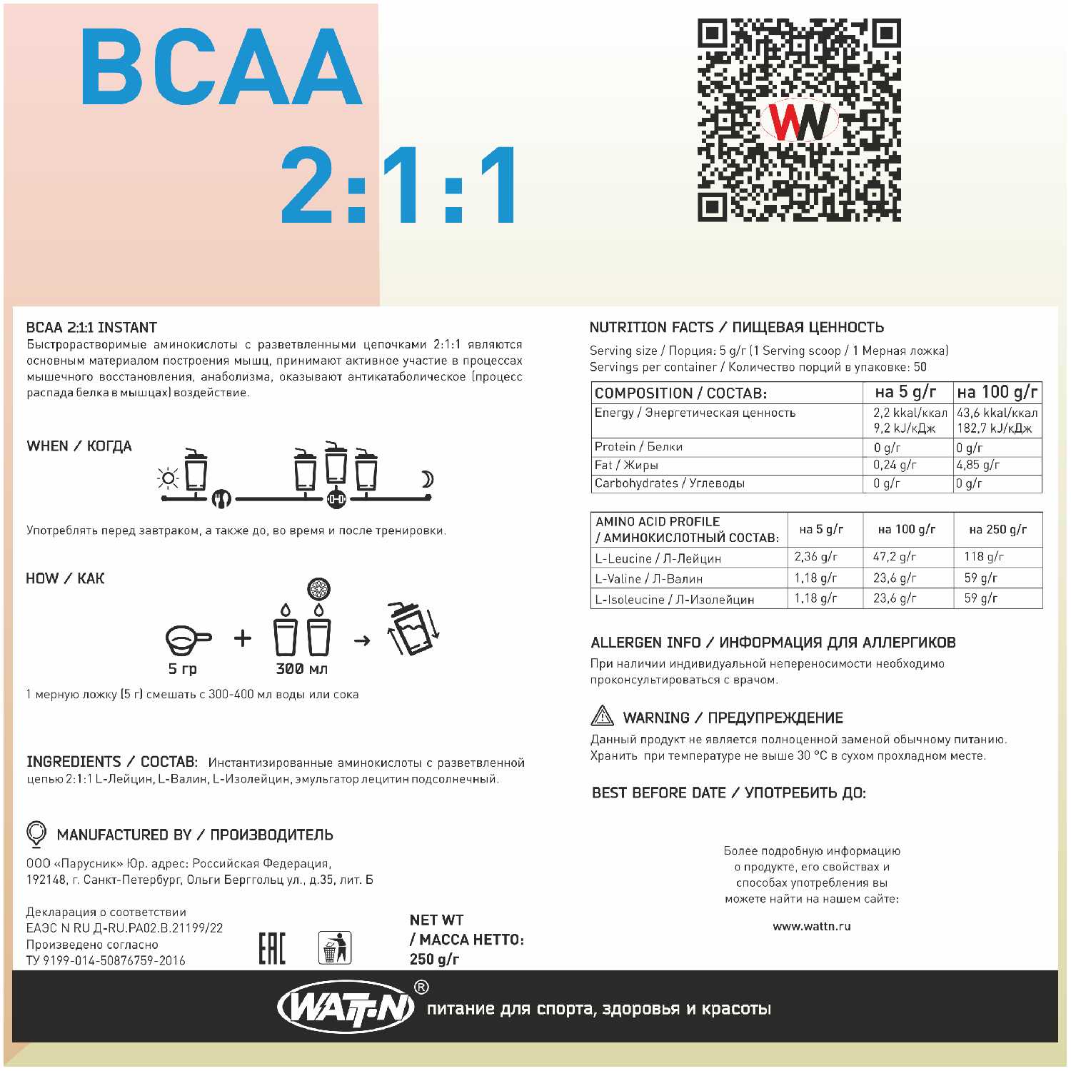 Watt-N BCAA 2:1:1 250 гр. натуральный?