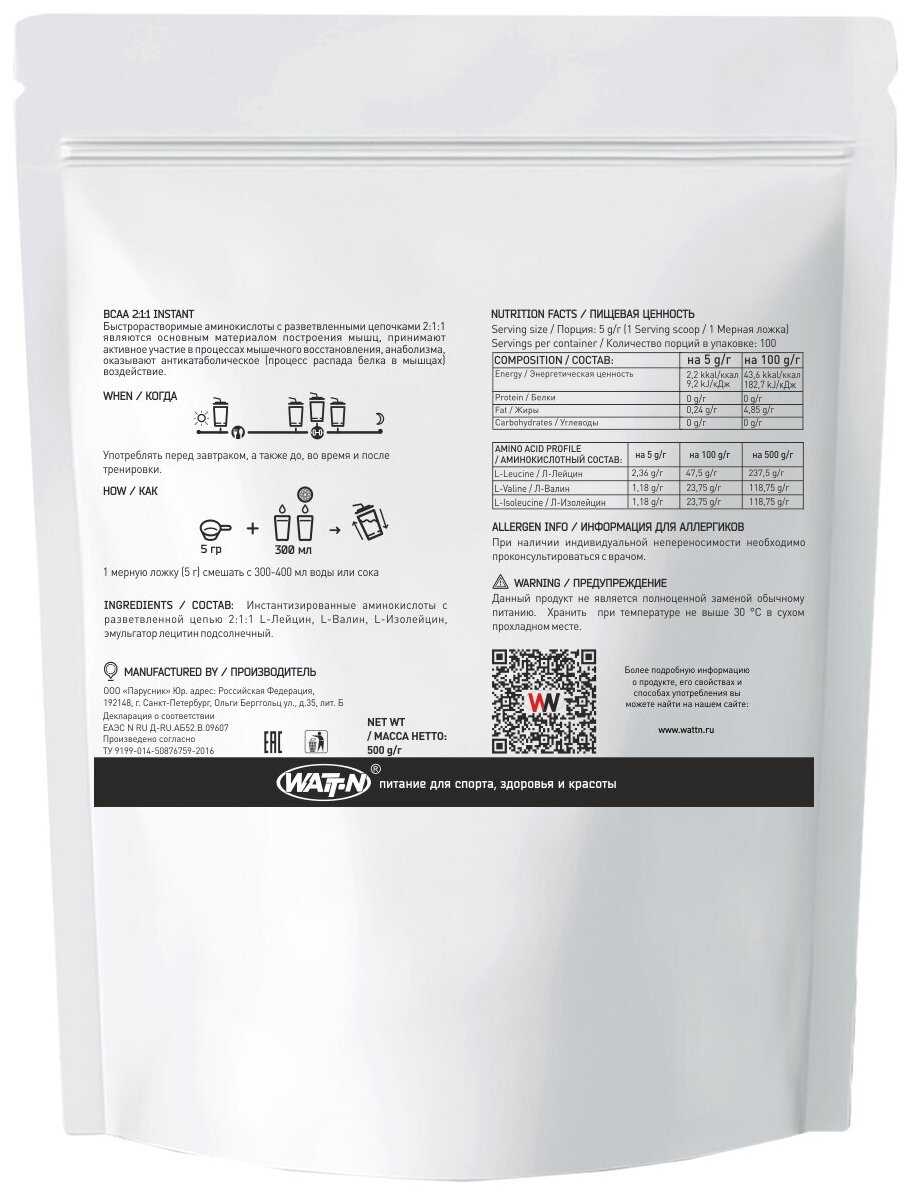 Watt-N BCAA 2:1:1 Инстант Натуральный 500 гр.?