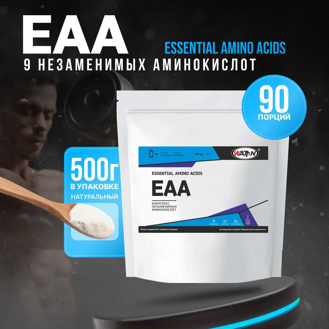 - + Хорошо действует на восстановление после сильных силовых, смешать порцию EAA с мерной ложкой протеина