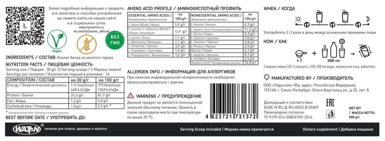 Watt-N WATT NUTRITION PEA Protein Isolate / И?