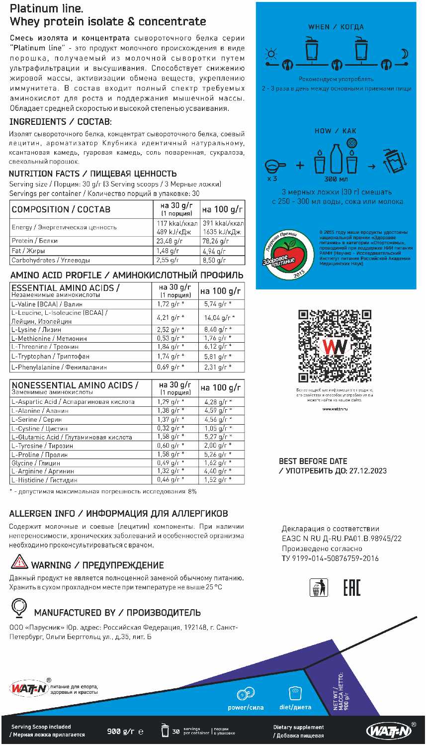 Watt-N WATT NUTRITION, Протеин PLATINUM WHEY?