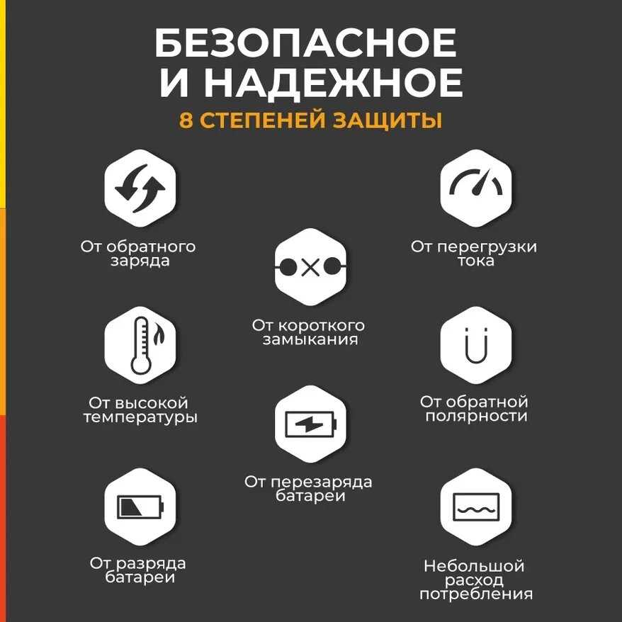Функции : | быстрая зарядка QC 3.0, встроенный амперметр, встроенный вольтметр, встроенный фонарь, зарядка мобильных устройств (Powerbank), режим зимней зарядки |