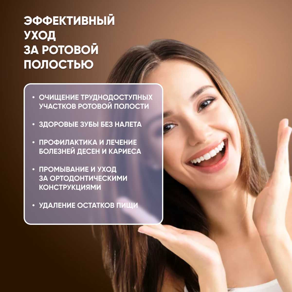 Прекрысный ирригатор, в комплекте идет набор для чистки различных зон ротовой полости, комфортные режимы как для новичков, так и для тех кто уже пользовался ирригаторами. Компактный и удобный в перевозке вариант со своим мешочком. Бак достаточно вместительный, для одной очистки достаточно в наполнение бака 2-3 раза.