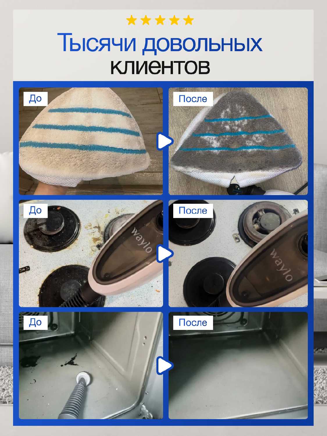 Отзывы о Паровая швабра Waylo (1300Вт, 0,4л)