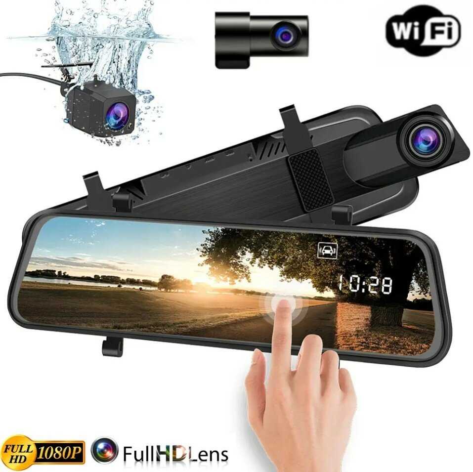 Автомобильный видеорегистратор в виде зеркала заднего вида с 3 камерами / Cенсорный IPS экран с разрешением видеозаписи Full HD 1080P / G-sensor / WDR — 43 отзывов, плюсы и минусы