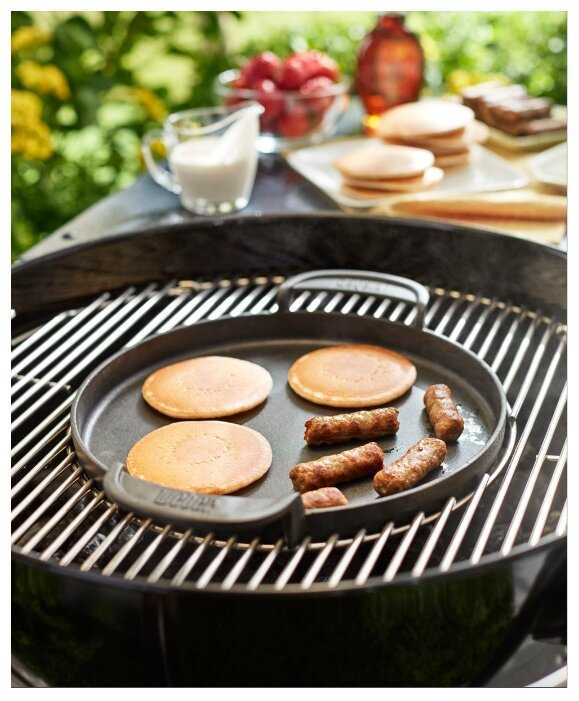 мы разогрейте сковородку в течение 5 минут; столько же времени, что нам разогреть наш газовый гриль. Инструкции в комплекте с жаровней, прямые пользователю Нагрейте духовку на 15 минут. Если вы желаете хороший твердый шептала на ваше мясо, это, наверное, правильное количество подогрейте время. Однако, сковородка будет достаточно горячей в течение пяти минут на гриле лосось, форель, или различные овощи.<бр /><бр />внутренний диаметр для “Вебер 7421 для гурманов Барбекю гриль Система” составляет примерно 11 5/8”; это около 1” глубоко. Сковородка подходит на газ Вебер бытие гриль и оставляет достаточно места для приготовления пищи. Если вам нужна сковорода, которая не покрывает всей поверхности решетки, вам может понравиться этот продукт.