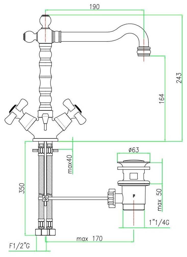 Характеристи Webert Armony с донным клапаном золото AM700302010