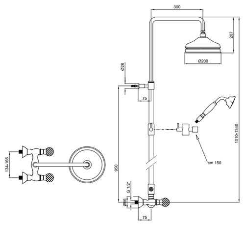 | Высота стойки для душа : | 1500 мм |