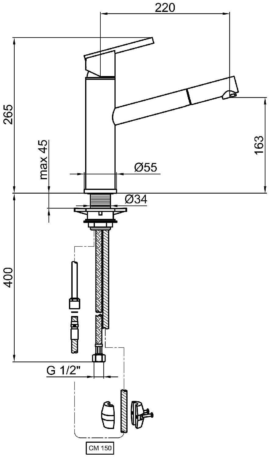 Характеристи Webert TRENTO (pull-out) granit Safari TN940102574