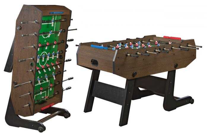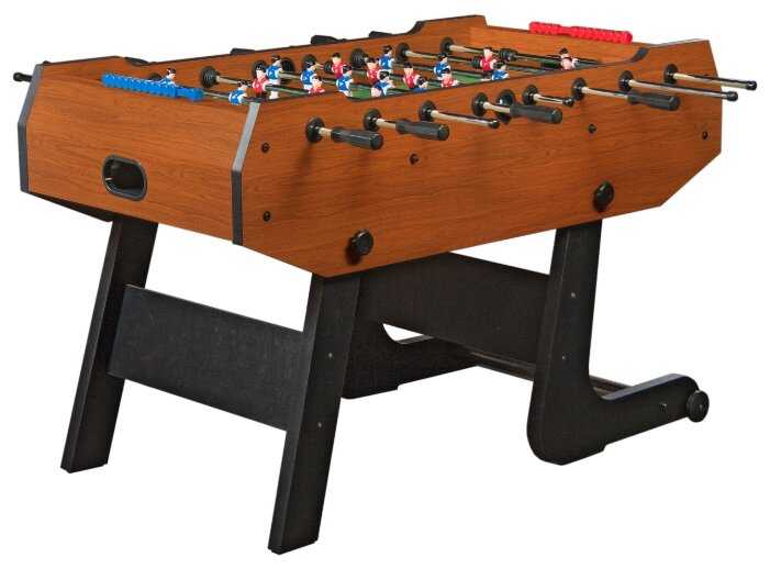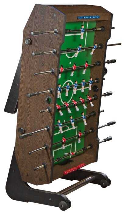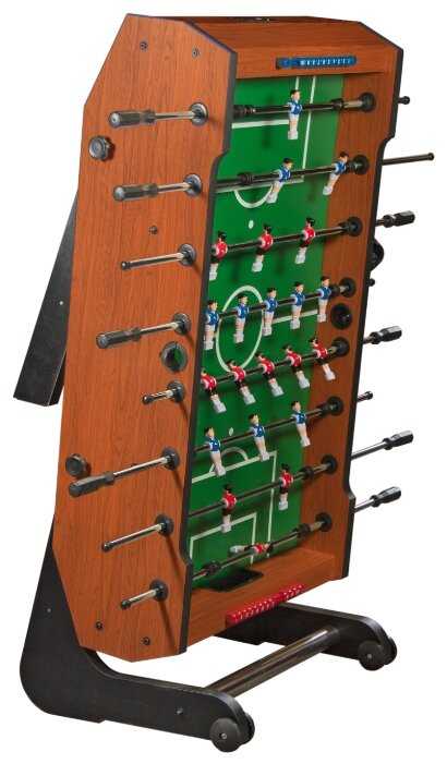 - + Массивный футбол, который подойдёт для публичных пространств. Легко складывается, ручки надёжные. Удобен для игры в четвёртом.