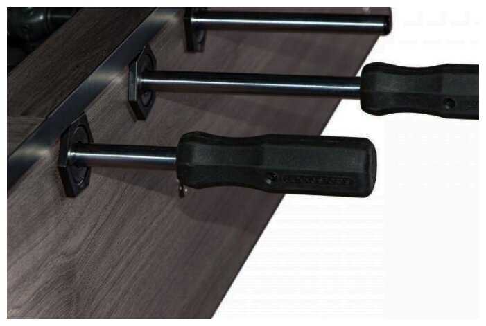 - - На штангах хромовое покрытие стало облезать через 2 недели игры, штанги стали плохо вращаться в пластиковых втулках, что привело к невозможности играть без заедания штанг. Ручки на штангах не закрепить, в самих штангах имеются отверстия, а в ручках таких отверстий не предусмотрено, метизов для крепления ручек в комплекте нет, хотя инструкцией предусмотрено крепление ручек именно метизами. Стол заказывали в магазине Бильярд-групп. По указанным недостаткам мы связались с магазином, там нам сразу дали обратную связь, и так как стол нам нравился, мы договорились о замене штанг и ручек, не возвращая по гарантии, магазин пообещал заменить в ближайшее время. Позже оказалось, что поставщик (Китай) сможет доставить комплектующие только к маю, потом только к июню, в конечном итоге представители магазина вовсе перестали отвечать на сообщения.