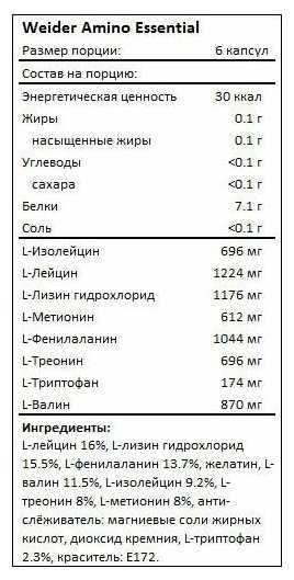 Основной ингредиент : | валин, изолейцин, лейцин, треонин, триптофан, фенилаланин |