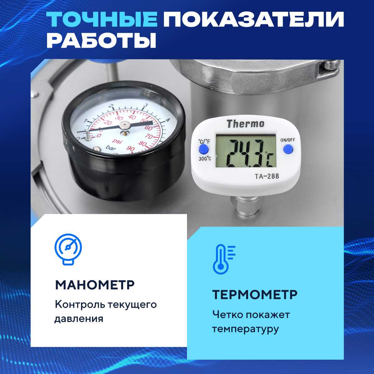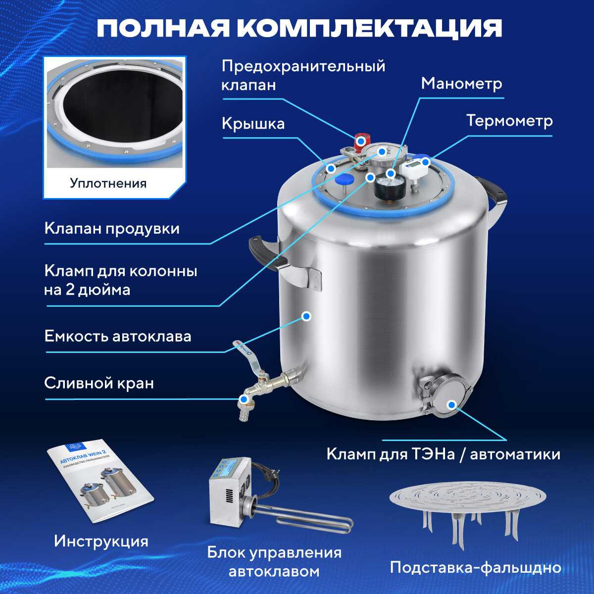 Эксплуатационные характеристики и производительность: Автоклав подтверждает свою высокую производительность при работе с традиционными видами консервов, такими как тушенка, каши с мясом и супы, где пользователи единогласно отмечают превосходный вкус и качество готового продукта. Ключевым эксплуатационным преимуществом является значительное сокращение времени и трудозатрат на процесс консервирования по сравнению с ручными методами, автоматизируя основные процессы нагрева и стерилизации. Технические параметры, такие как рабочее давление, находятся в заявленном диапазоне, при этом манометр показывает около 1.2-1.3 атм для мясных продуктов, в то время как для овощных консервов давление может не подниматься значительно, что является нормальным для данного типа обработки. Режим работы на пару особо выделяется пользователями как эффективный, сокращающий время приготовления и, по некоторым данным, предотвращающий подгорание продуктов в отличие от других методов. Возможность использования аппарата в качестве самогонного с применением двухдюймовой колонны расширяет его функциональность, делая его мультифункциональным устройством для кухни. Производительность напрямую зависит от комплектации, и базовой версии может быть недостаточно для полной автоматизации, требуя докупки блока управления и ТЭНа для электрического использования.