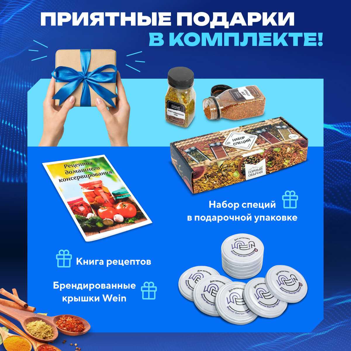 Спасибо продавцу за подарочки - в коробку с автоклавом вложили набор специй в баночках и еще 10 крышек для банок. Очень приятно!