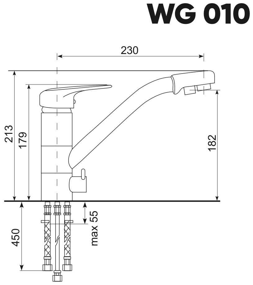 Для подключения покупали дополнительные гибкие шланги подлиннее