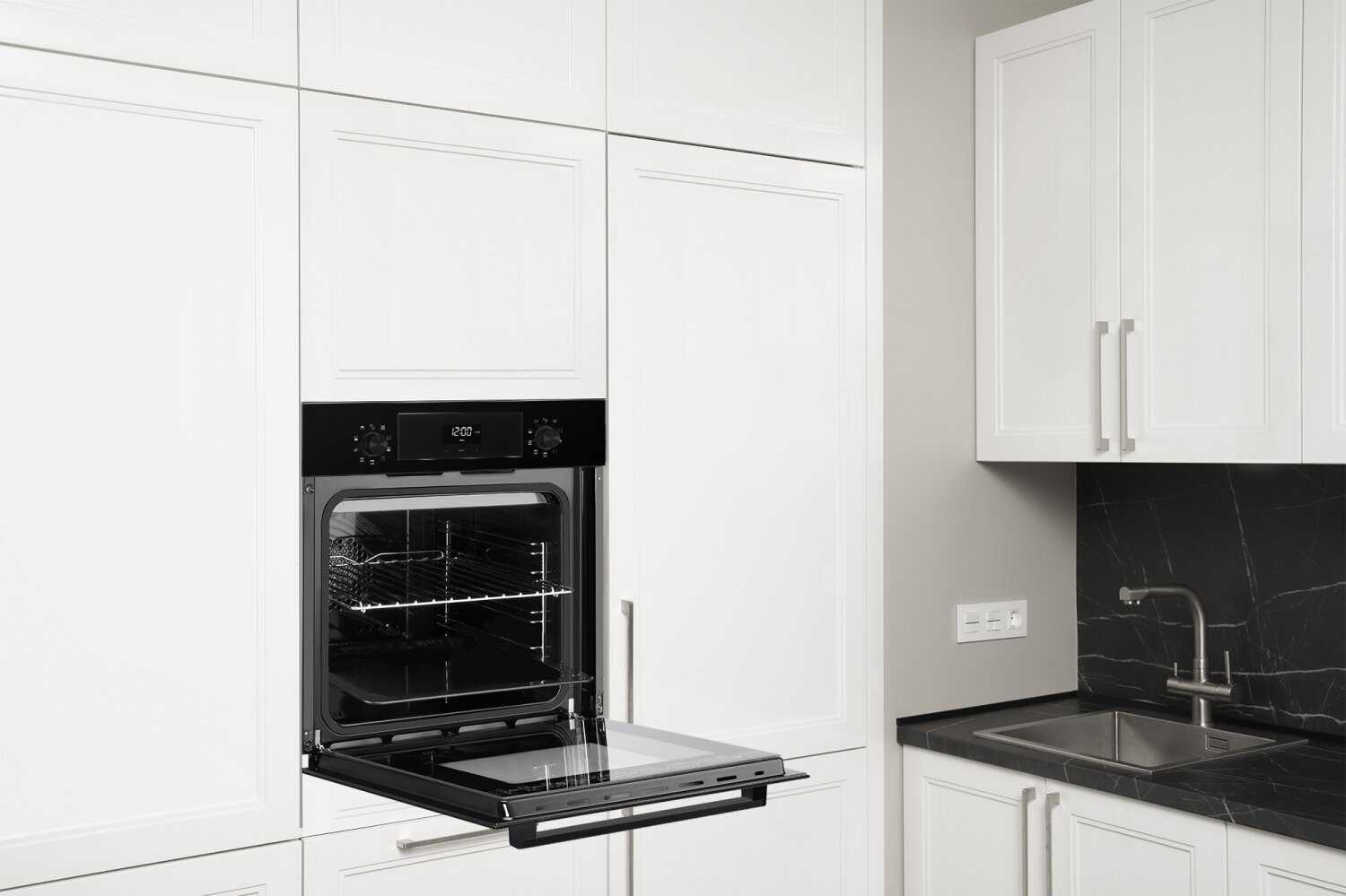 Отличный духовой шкаф, большой, много режимов, ручки утапливаются, можно задать время приготовления, есть оповещение звуковое. Разогревается быстро, но долго остывает.