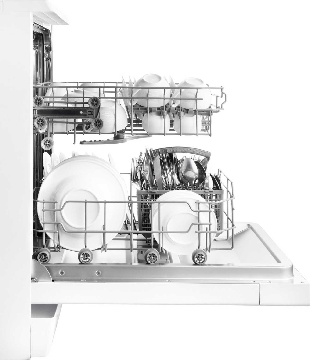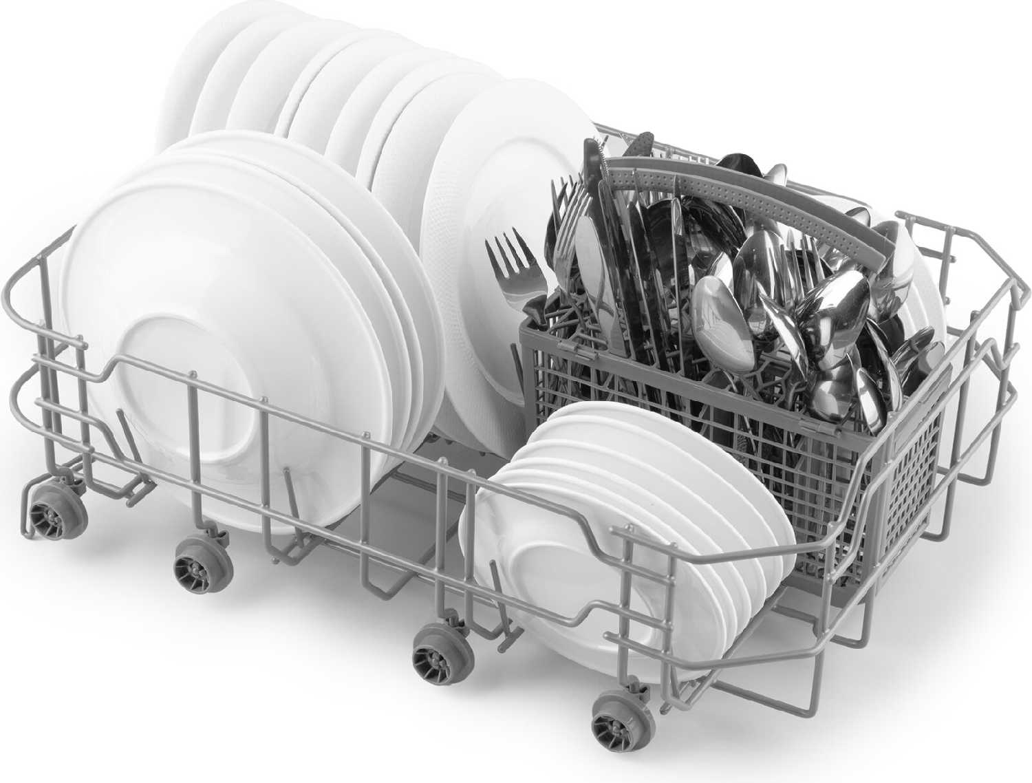 - Съемная корзина для столовых приборов (хотя размещение ножей ограничено из-за конфликта с разбрызгивателем).