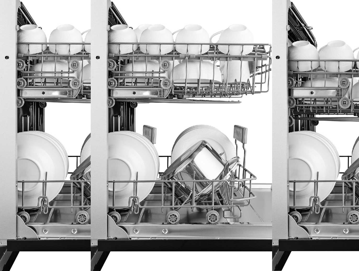 - Снижает нагрузку на нижние корзины, оптимизируя пространство для крупной посуды.