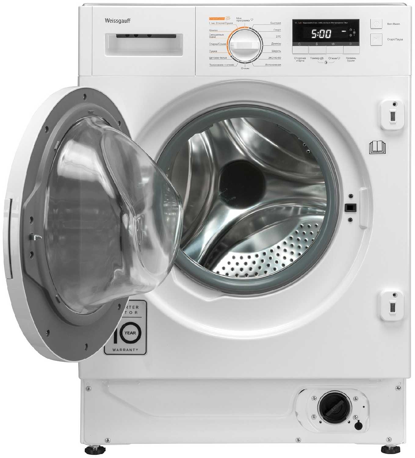 Отзывы о надёжности противоречивы: часть владельцев пользуются техникой 4+ года без поломок, другие сталкиваются с выходом из строя сушки (ошибка Е3А), протечками люка или износом подшипников через 1-2 года. Гарантийный ремонт не всегда эффективен, особенно при браке комплектующих. -