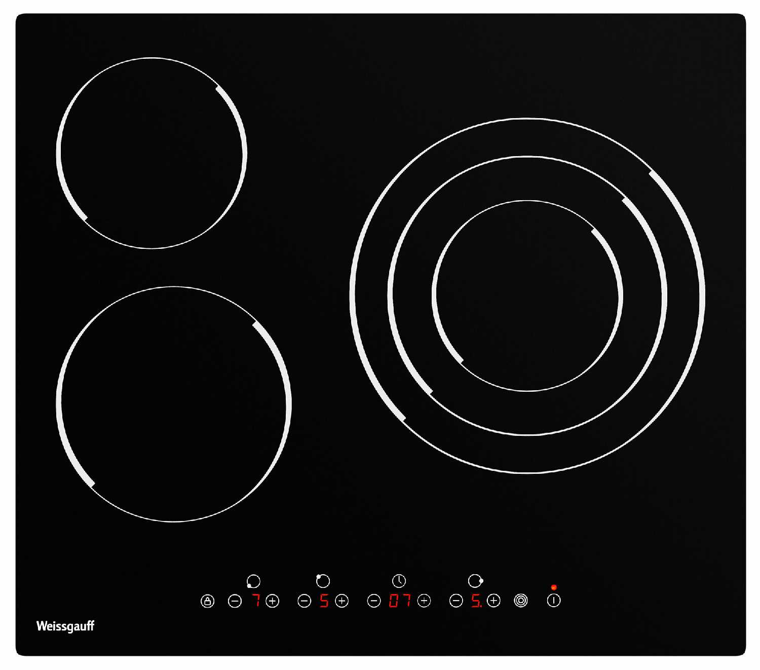 - + Удобное расположение зон нагревания,есть зона для посуды большого размера. Удобная сенсорная панель,есть зона расширения нагрева для 3-х разных диаметров посуды.