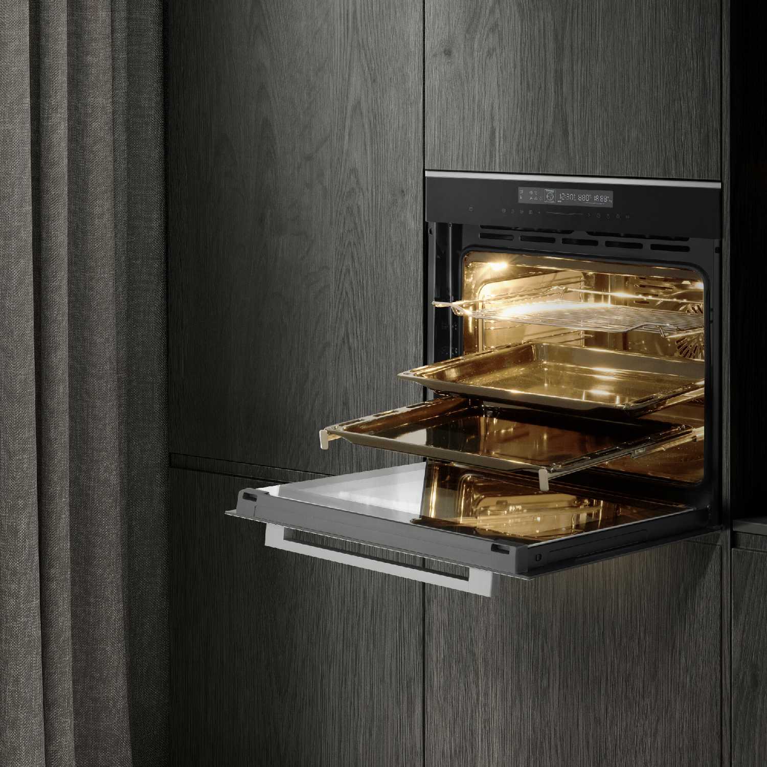 Оригинальный шкаф как в дизайне, так и в функциях. Много программ, есть даже для теста или ферментации. Комплект хороший, телескопы 2 противня и решетка. Работает тихо, вентилятор охлаждения ручки вообще не слышно.