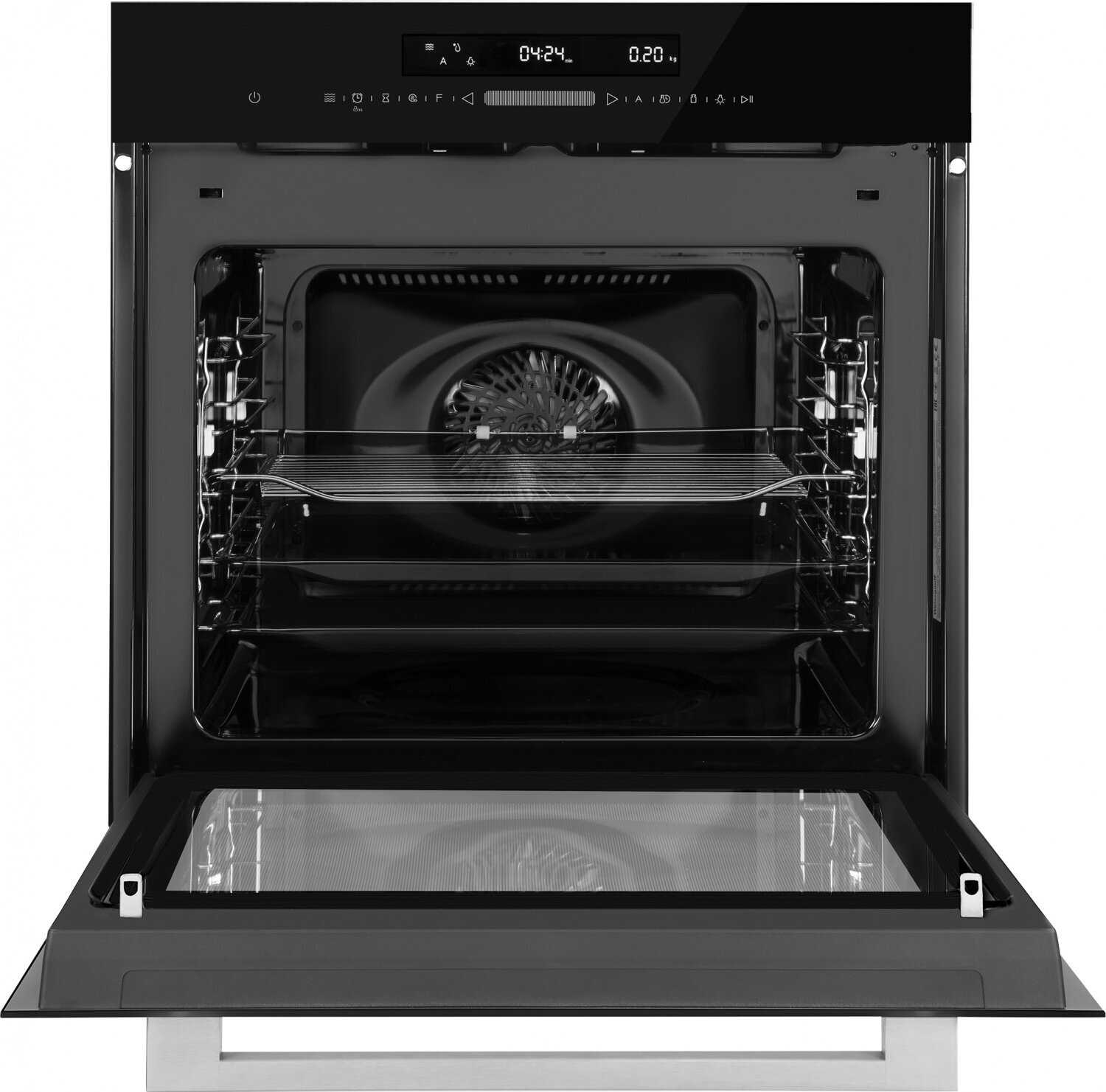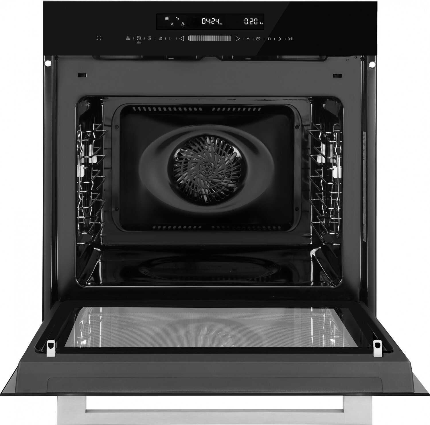 - Вентилятор поддерживает стабильную температуру, улучшая качество блюд (воздушное тесто, сочное мясо).