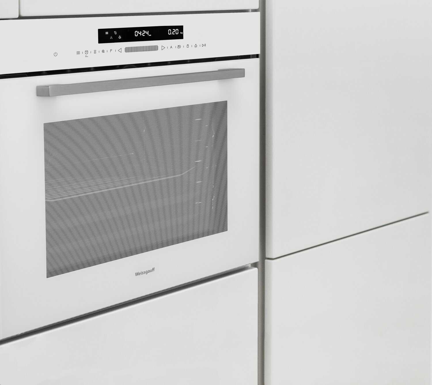- + Красивый, многофункциональный духовой шкаф. Для белой кухни идеально.