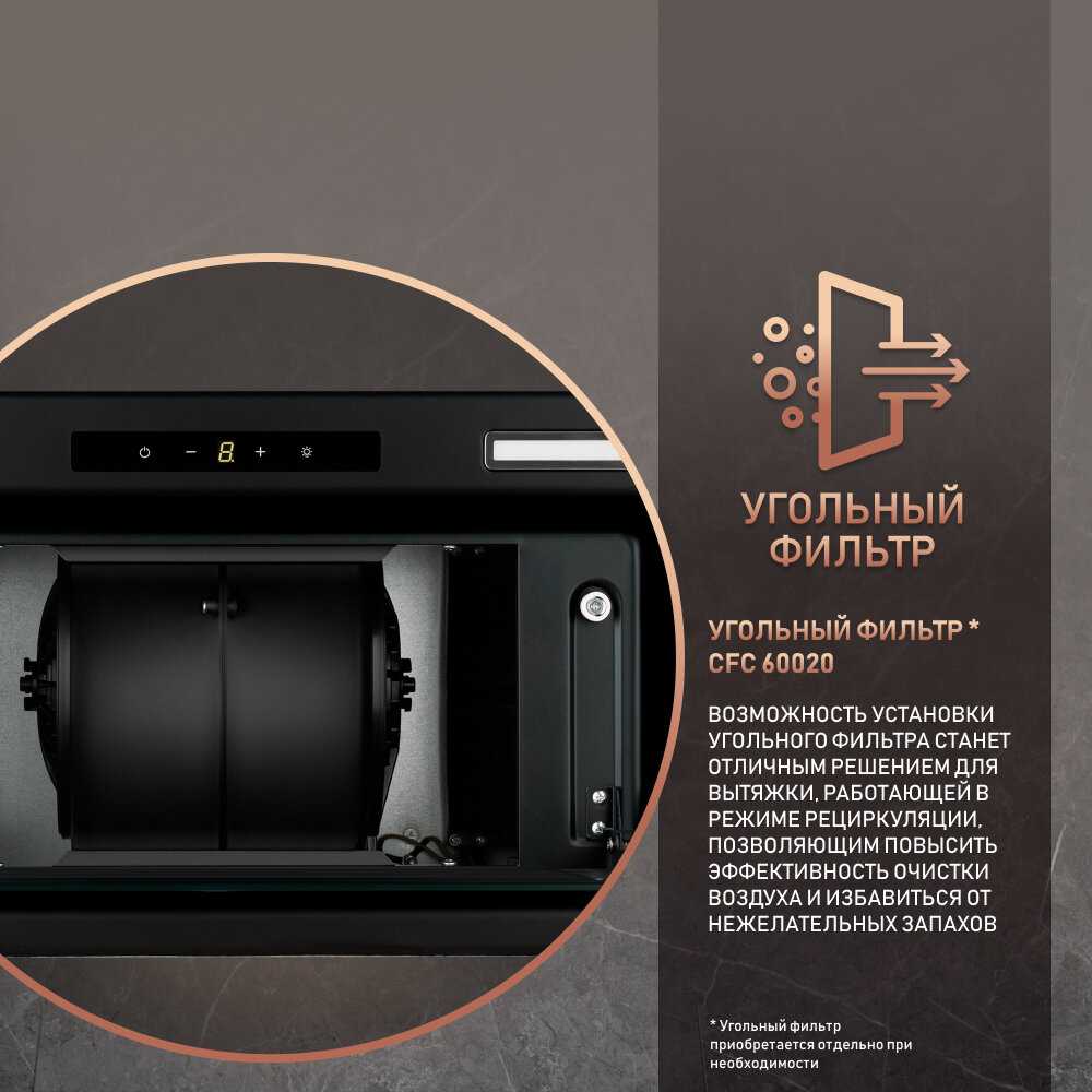 - + Очень крутая вытяжка! Сосёт-ураган! Дополнительно поставил угольные фильтры.