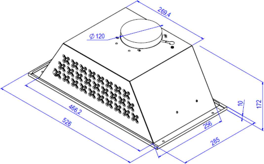 Дополнительная информация : | Эффективная производительность м3/ч: 320, площадь помещения м2: 27, возможность установки угольного фильтра, освещение LED 2x2 Вт |