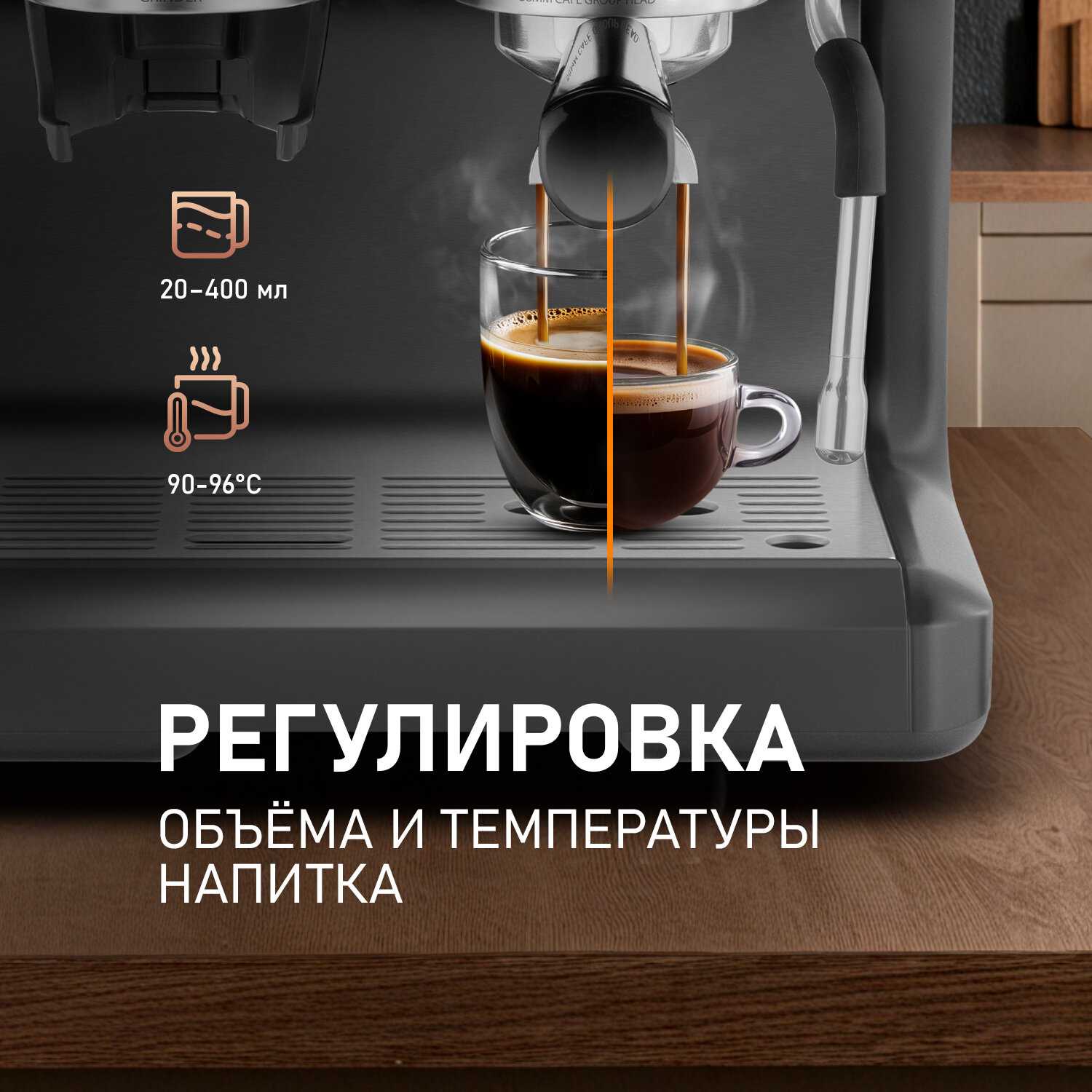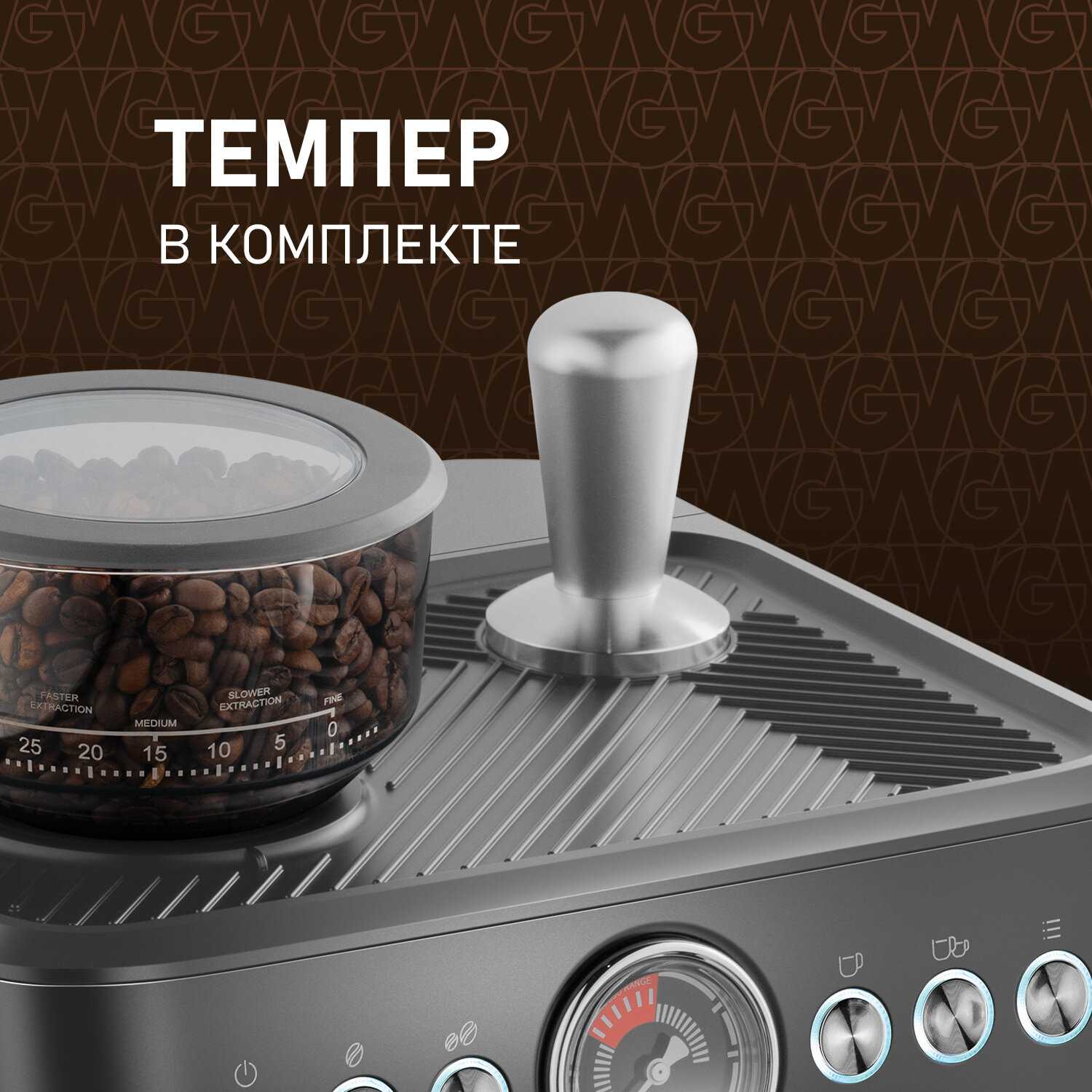 - + Возможность настраивать температуру, следить за давлением, выбирать помол.