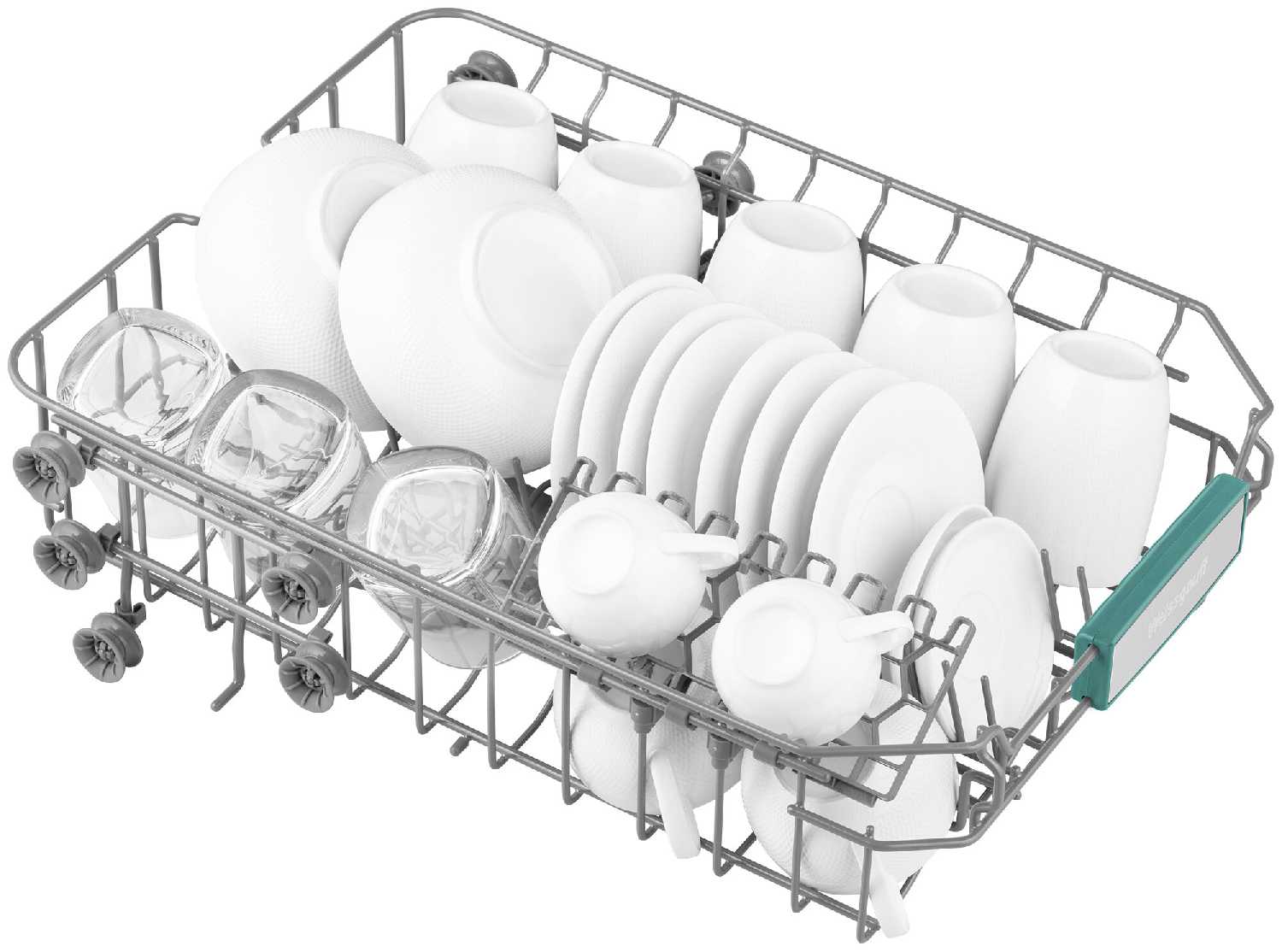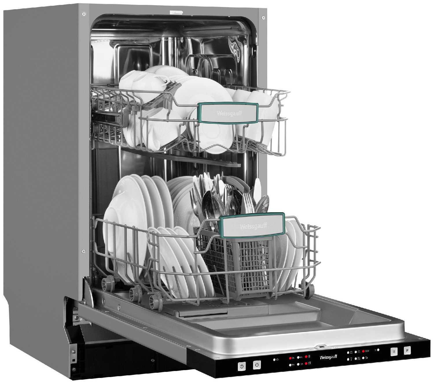 Данная модель имеет компактные размеры 45 см и оптимальна для небольшой семьи. Пользователи подтверждают, что за один цикл можно вымыть посуду, накопившуюся после нескольких приемов пищи. В машину помещаются тарелки, чашки, столовые приборы, а при грамотной укладке — даже сковороды и кастрюли небольших размеров. Для очень больших семей или частых готовок может потребоваться более одной мойки в день. -