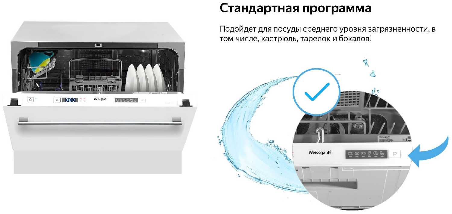 - Глубокие тарелки и сотейники требуют ручного предварительного ополаскивания из-за слабого напора в верхней зоне.