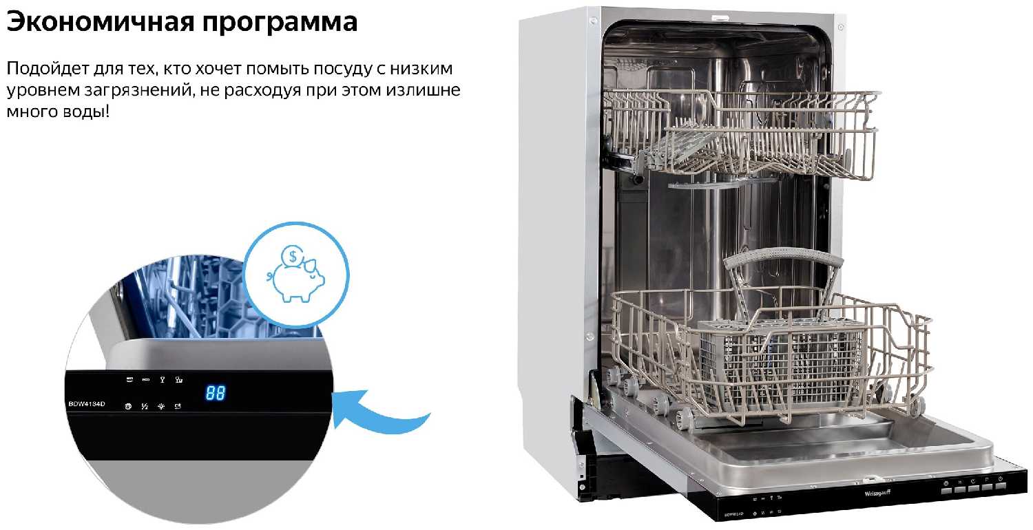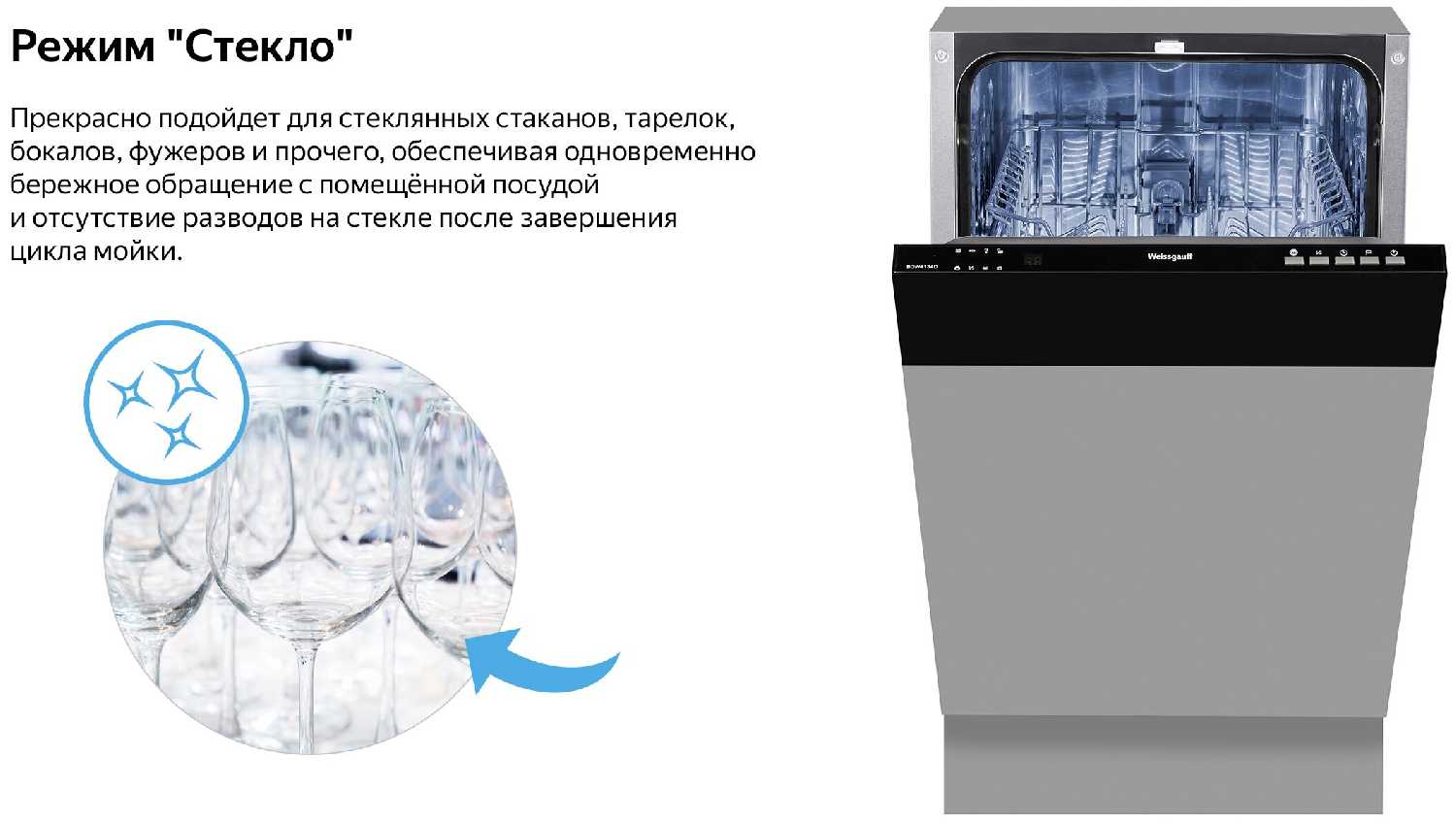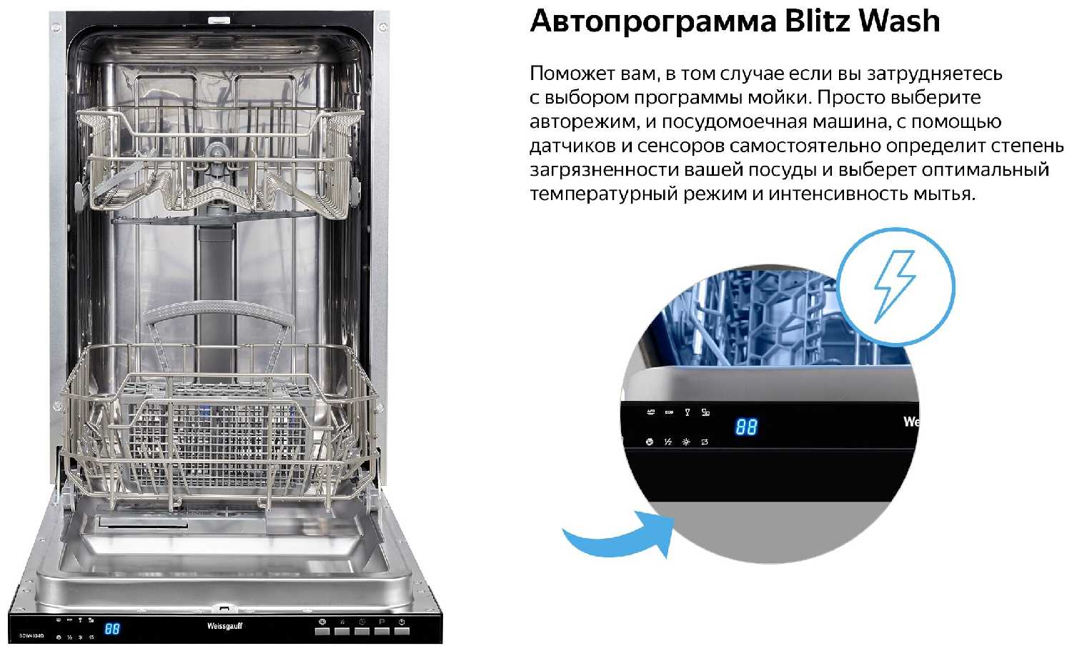 Дополнительная информация : | внутренняя подсветка, реализованная в мягком синем освещении, даст возможность оценить качество мытья сразу же после открытия дверцы посудомойки |