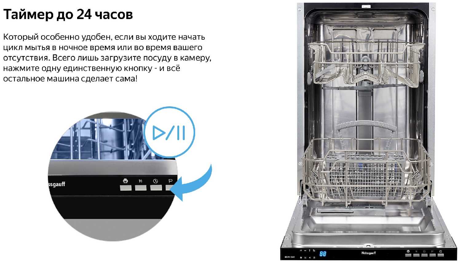 Особенности : | внутренняя поверхность из нержавеющей стали, дисплей, использование средств 3 в 1, подсветка камеры, регулируемая по высоте корзина для посуды, сенсор чистоты воды, таймер отсрочки |