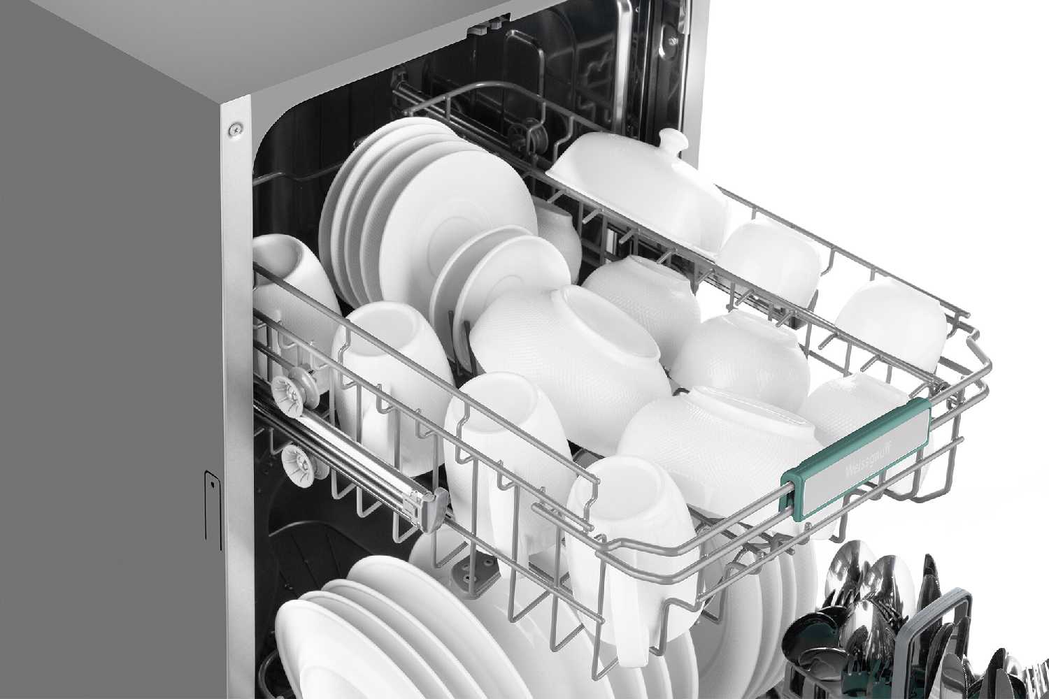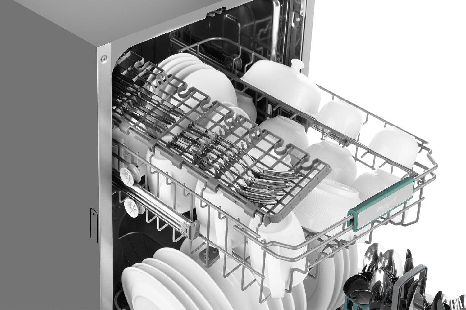 - + Посуду моет чисто. Удобно расположен отсек для соли.