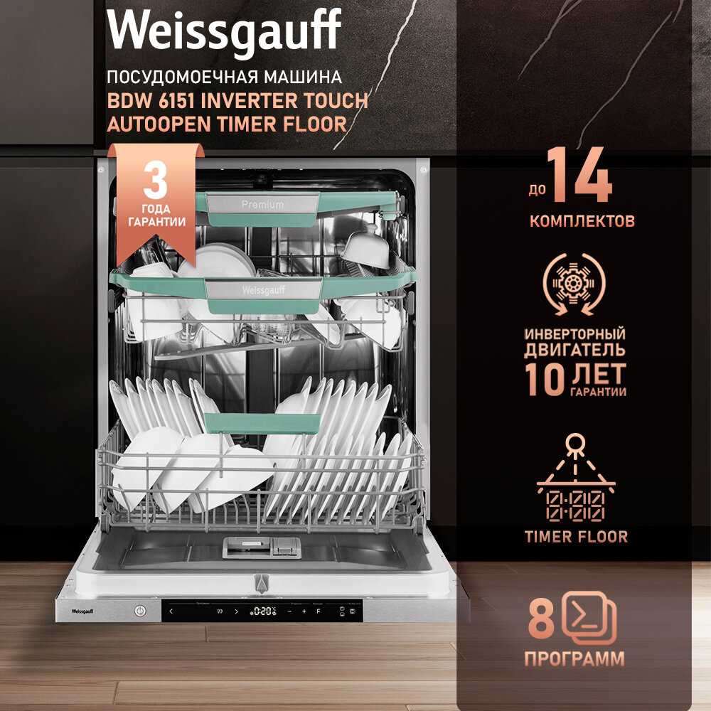 Отзывы о Встраиваемая посудомоечная машина Weissgauff BDW 6151 Inverter Touch AutoOpen Timer Floor (BDW 6151)