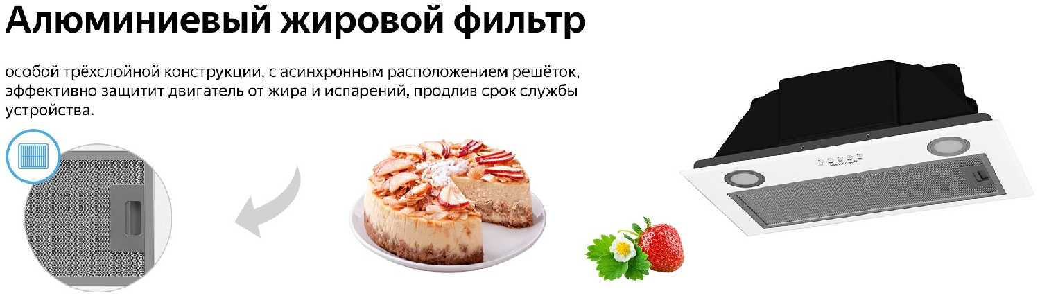- Металлические жироулавливающие фильтры съемные, моются в посудомойке, что упрощает обслуживание.