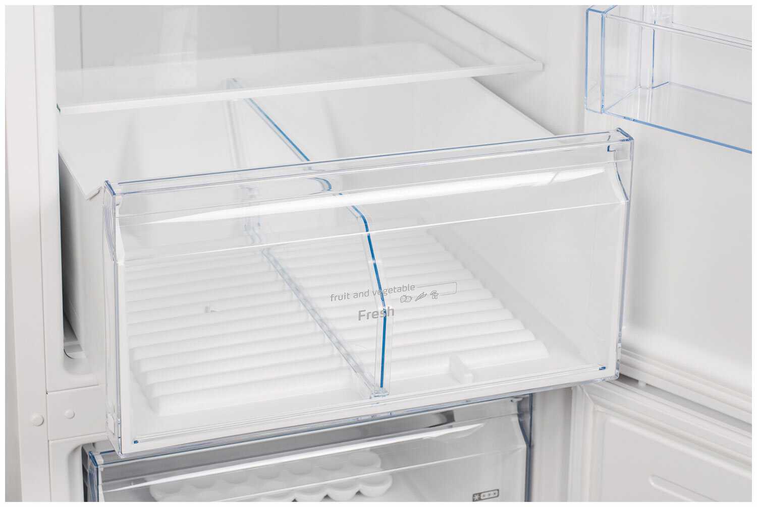 Скудная комплектация в плане бутылочниц и т.д. (хотя у меня в комплекте лежит пластиковая подставка на две бутылки, которая здесь не представлена), но мне большего и не надо было. Основное: полки — есть, ящик для фруктов-овощей тоже есть, смещение полок на уровень тоже есть, на случай, чтобы поставить большую кастрюлю.