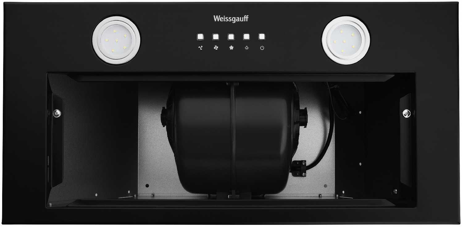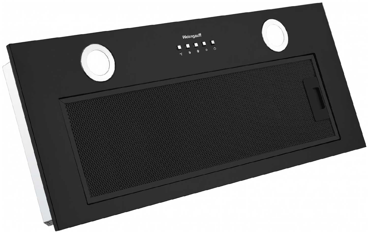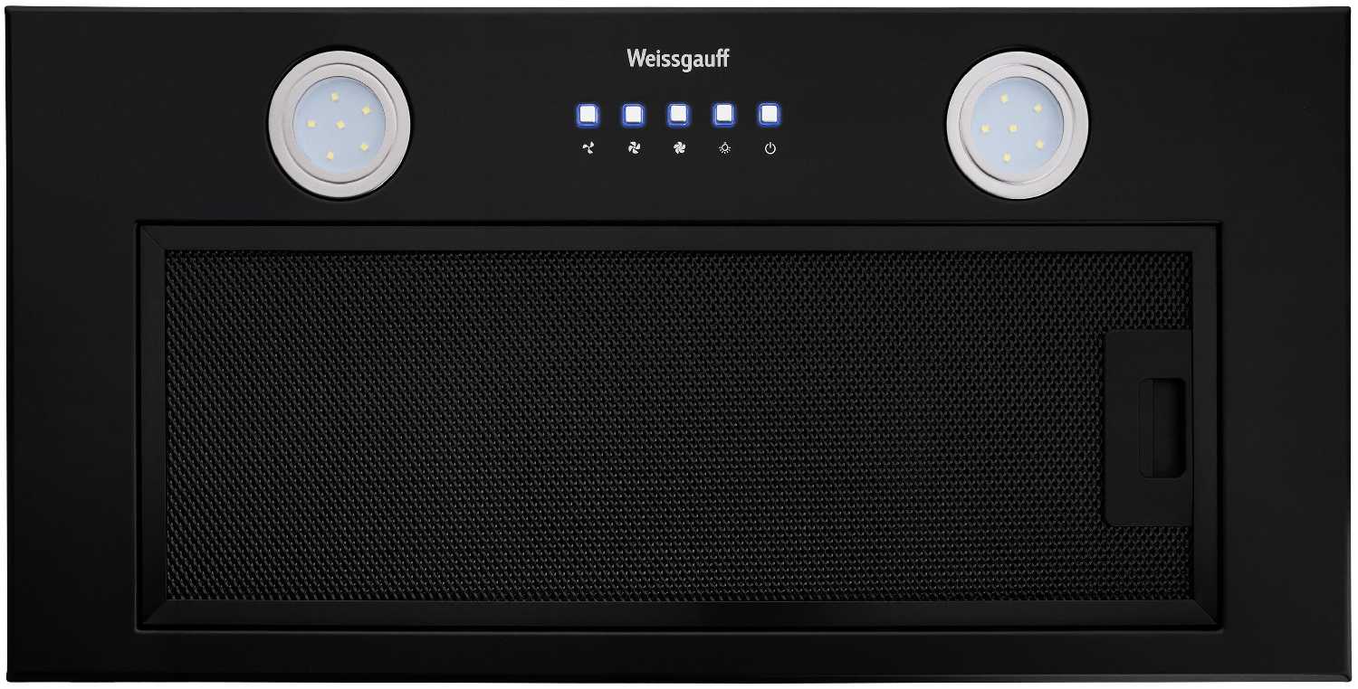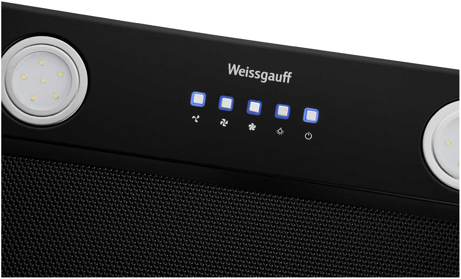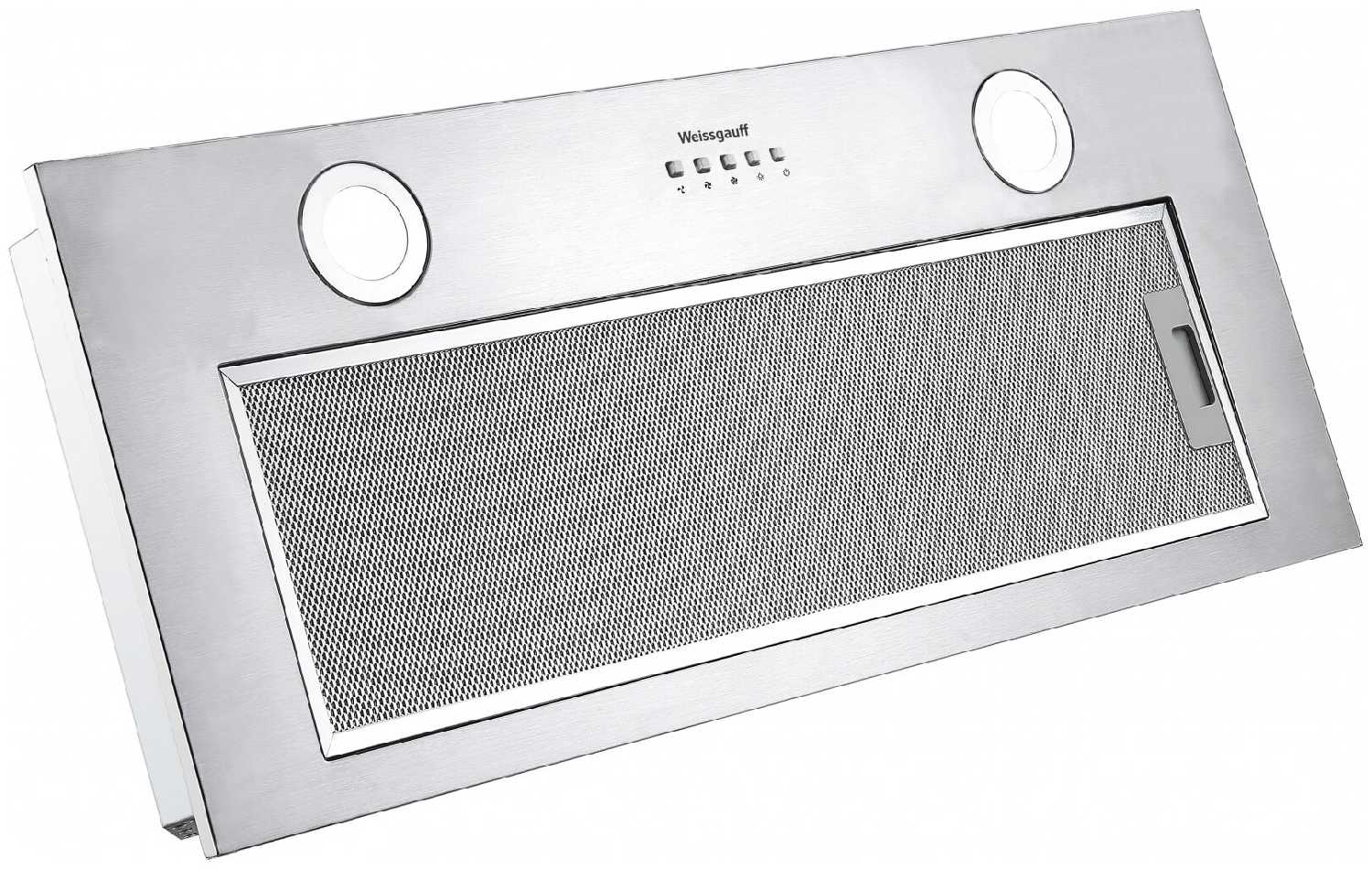 Модель получила высокие оценки за лаконичный дизайн и качество материалов: нержавеющая сталь не темнеет после мытья, матовая поверхность скрывает отпечатки. Встраиваемое исполнение позволяет полностью "спрятать" технику в шкафу 60 см без выпирающих элементов. Управление реализовано выпуклыми кнопками с тактильной подсветкой (синей или белой), что исключает ошибки при включении в темноте. Однако отмечается слабая механическая отзывчивость кнопок и их ненадёжная фиксация на заводе. Жироулавливающие сетки требуют ежедневного протирания — застывшие брызги оставляют жёлтые пятна. Критичный минус — необходимость докупать угольные фильтры (оригинал Weissgauff CFA 80020), так как они отсутствуют в комплекте.