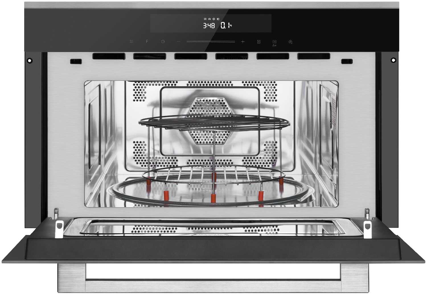 Для больших семей: Модель оптимальна для домохозяйств из 4-6 человек благодаря объему, позволяющему разогревать многопорционные блюда. Функции конвекции и пароварки заменяют духовку при приготовлении гарниров, выпечки и диетических блюд.