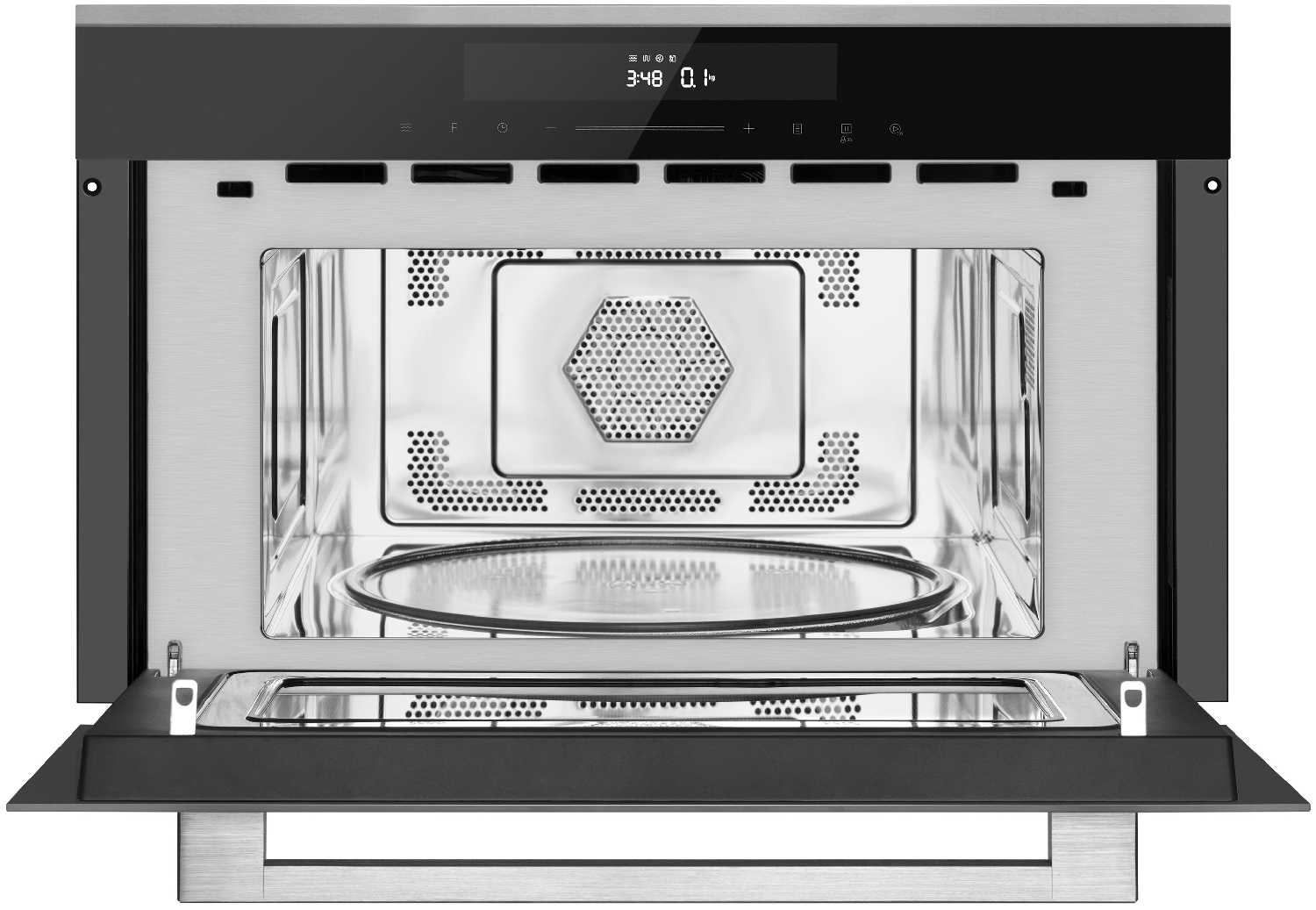 - + Отличный внешний вид, то что искали. Вместе с духовым шкафом этой серии выглядит супер. Дверка открывается вниз, что очень удобно для встроенной микроволновки.