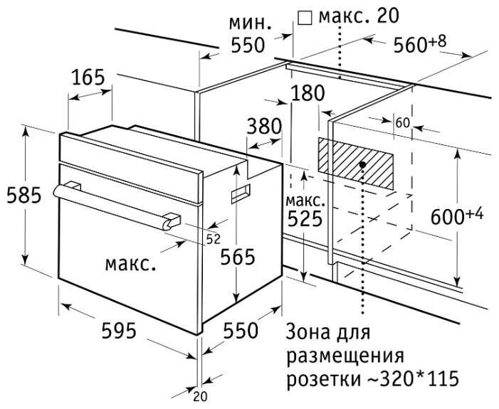 Кто-то тут писал про нестандартные размеры встраивания - это неправда. Размеры очень даже стандартные, не беспокойтесь (кстати, о размерах: на оф.сайте продавца в описании духовки размеры одни, в прилагаемой там же схеме сборки - другие, а при звонке мне назвали вообще третьи, выводы делайте сами).