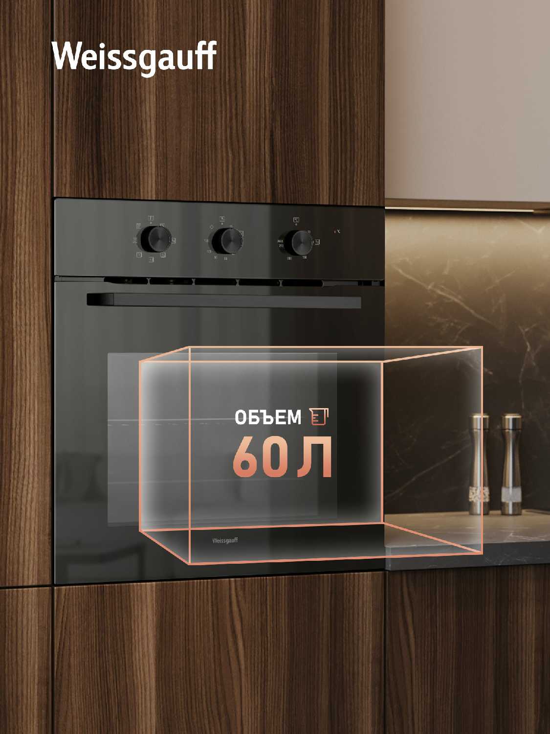 - Объем духовки: 60 л