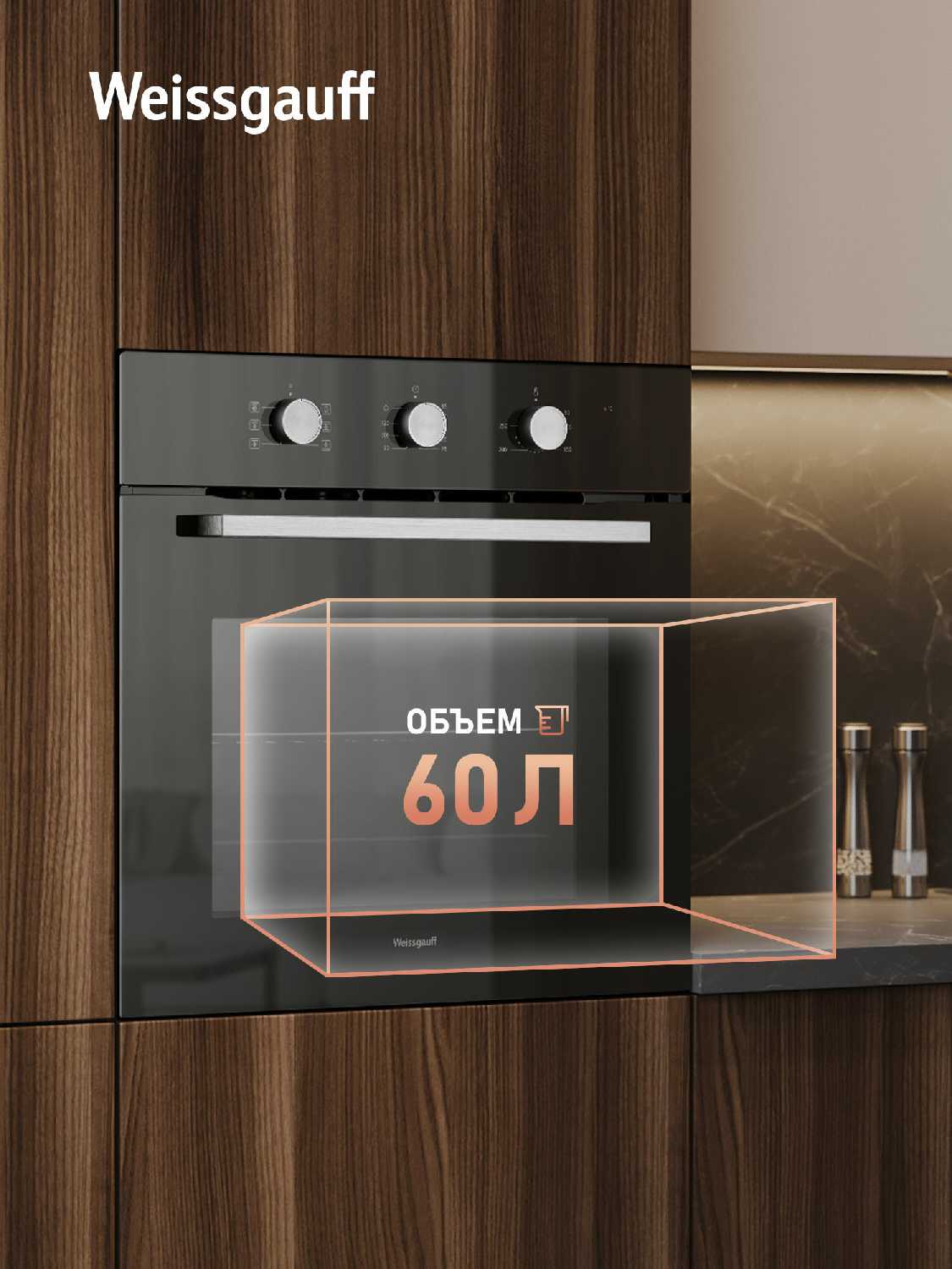 - Объем духовки: 60 л