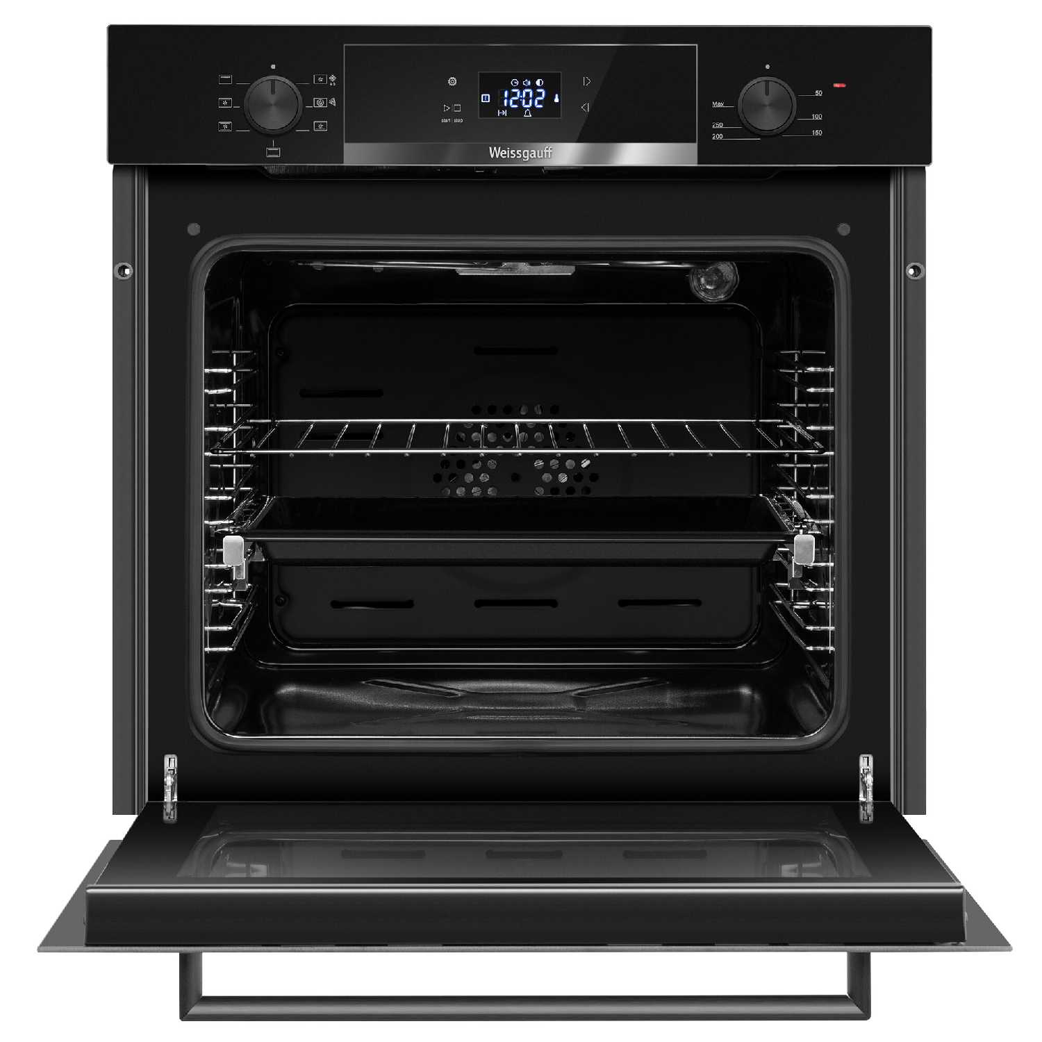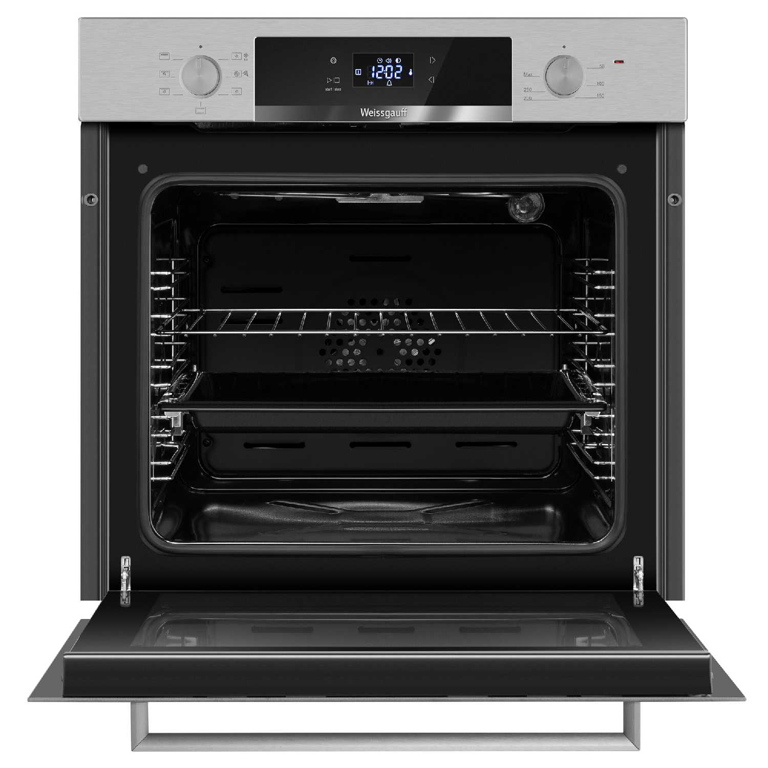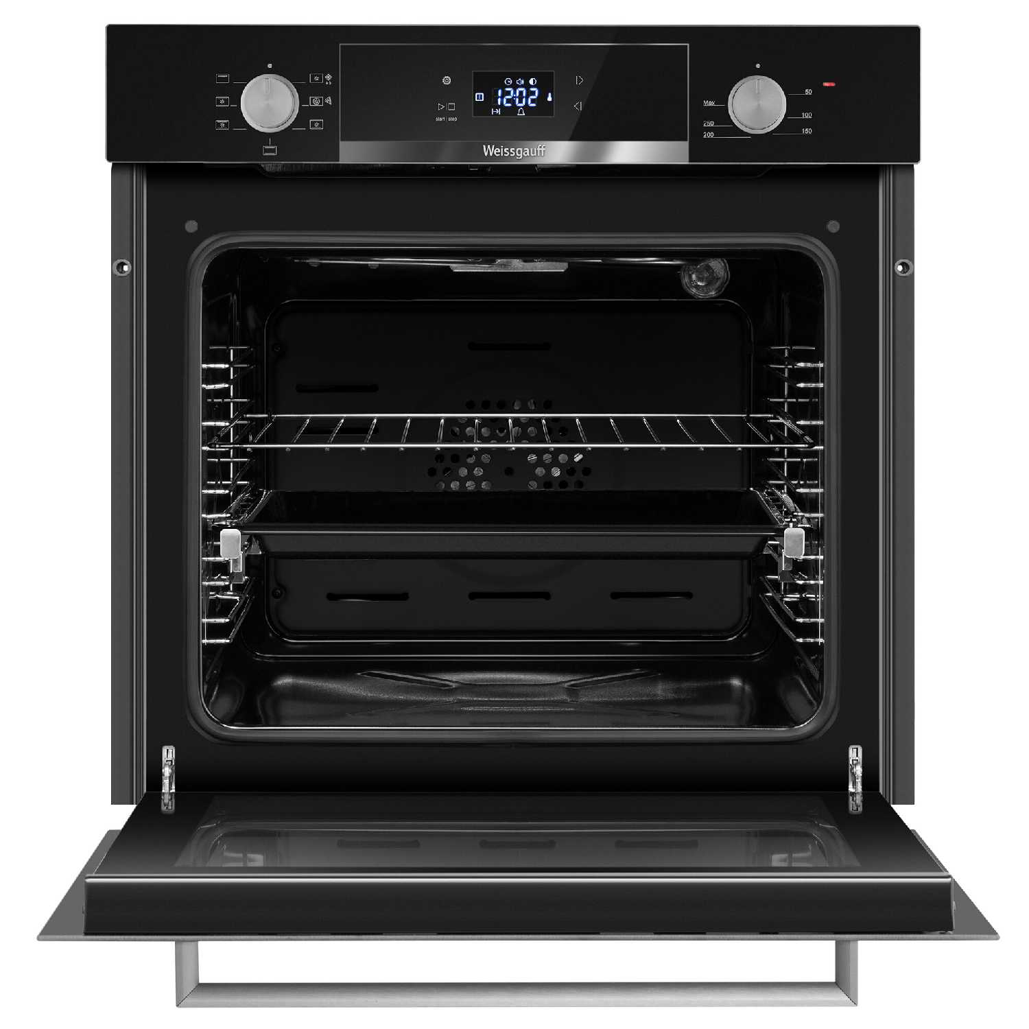 - Полное выдвижение противней на 100% для безопасного доступа к блюдам.