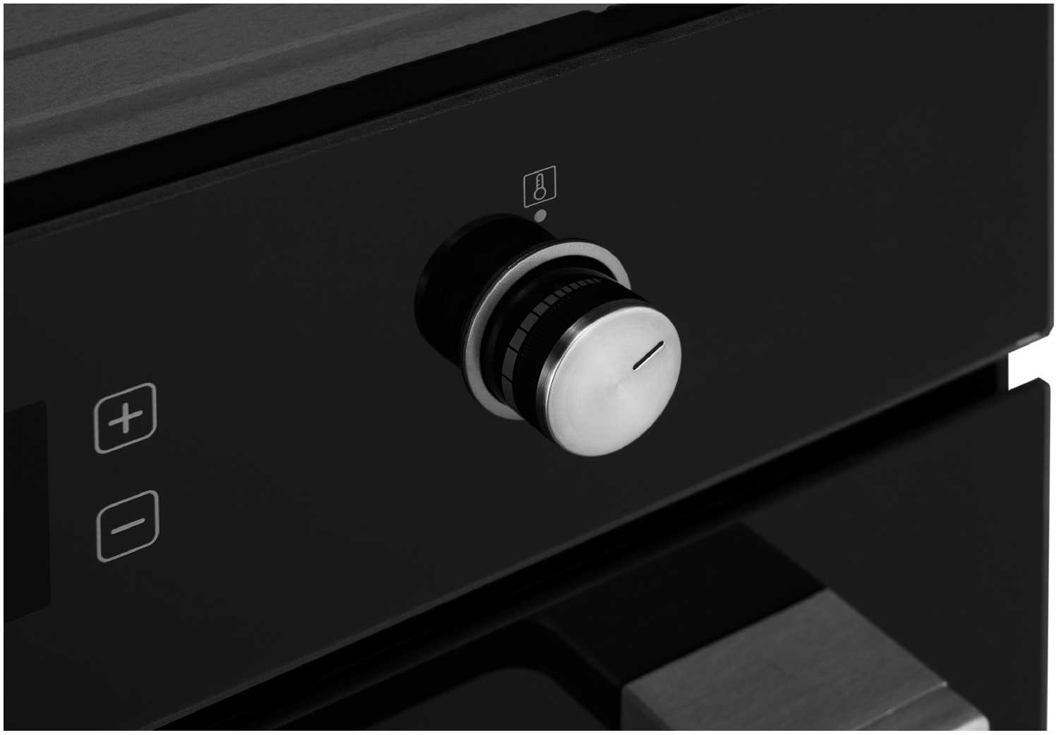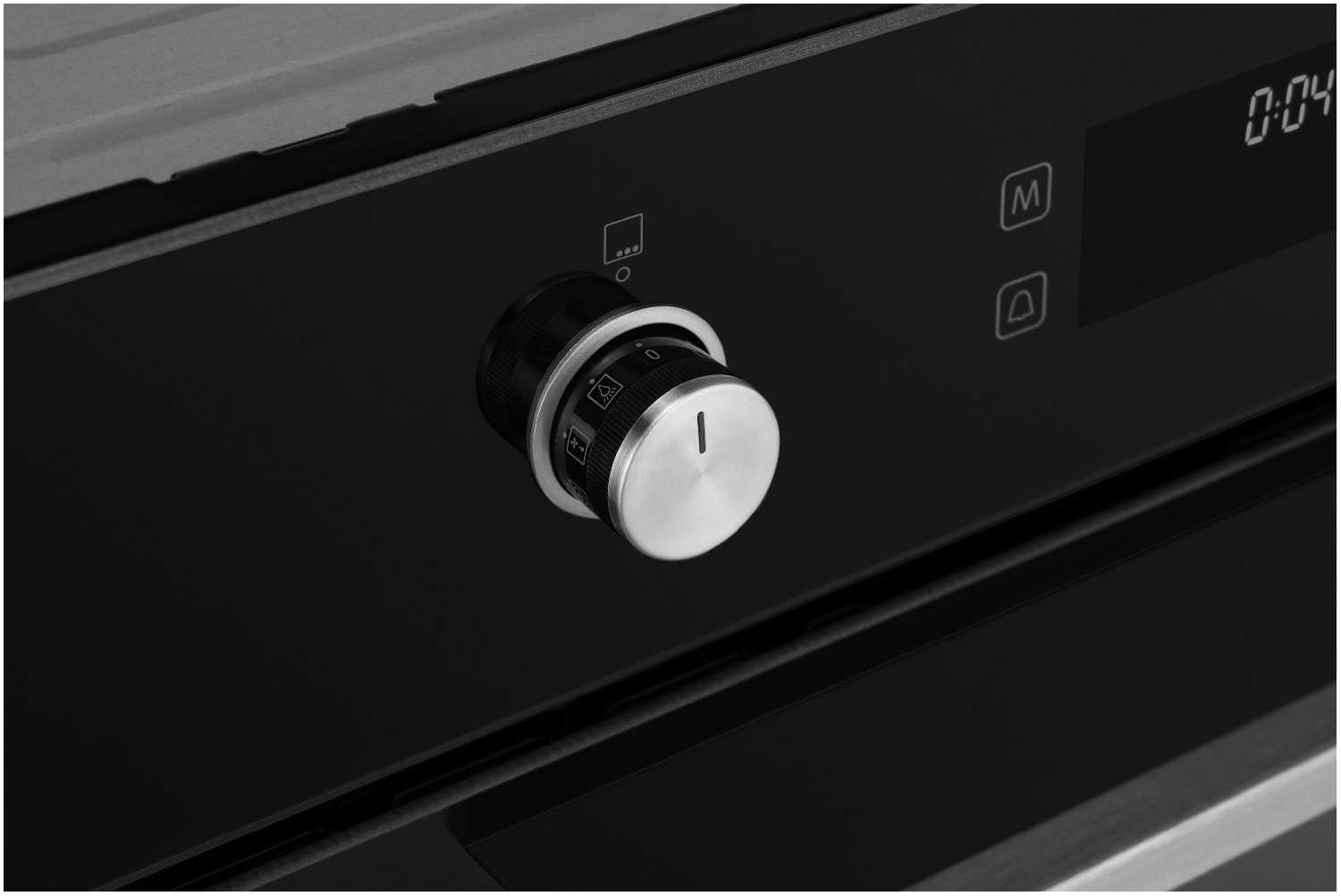 - + Выглядит современно, цифровой и сенсорный дисплей, противень на выдвижной направляющих, специальное покрытие внутри для удобства очистки. Физические ручки управления утапливаются в корпус духовки.
